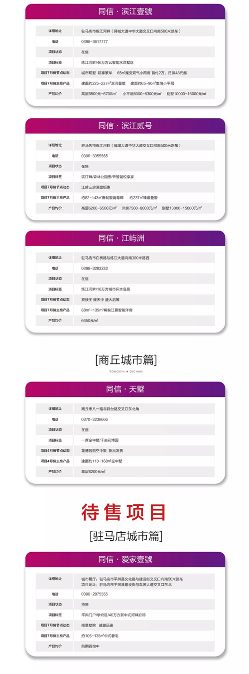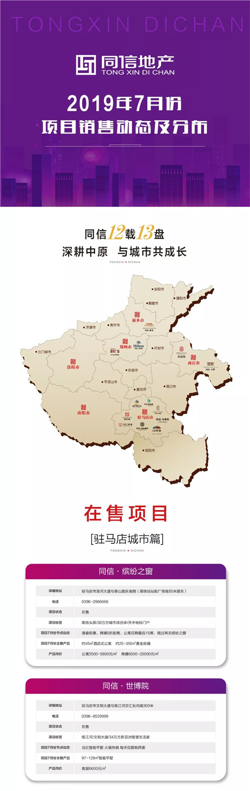 同信地產(chǎn)2019年7月份項目銷售動態(tài)及分布
