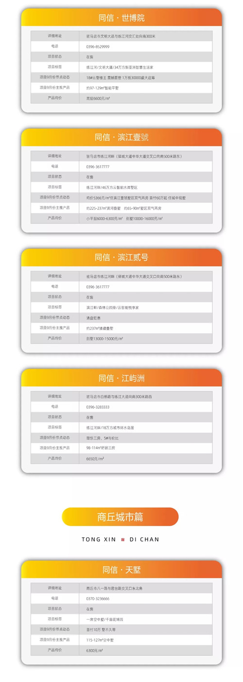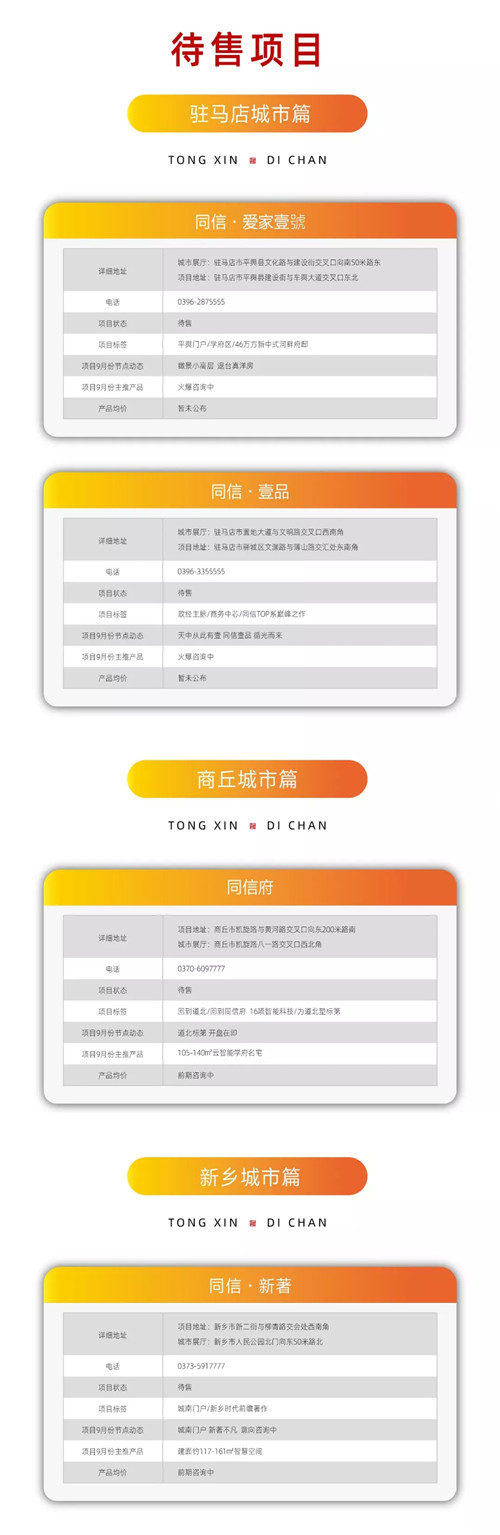 同信地產(chǎn)2019年9月份項目銷售動態(tài)及分布